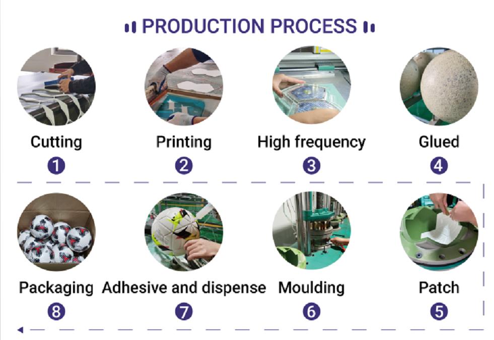 Procesul de turnare al mingilor obișnuite de fotbal acordă prioritate „elasticității uniforme”. După umflare, vezica interioară este supusă mai multor teste de presiune pentru a asigura o elasticitate constantă în întreaga minge. Pielea exterioară este adesea îmbinată prin lipire termică sau cusătură manuală. Mingile de fotbal cusute manual au cusături mai fine, etanșeitate mai bună la aer și o transmisie mai uniformă a elasticității și sunt utilizate în mod obișnuit în competițiile profesionale. Mingii de fotbal lipite prin căldură, cu eficiența lor ridicată de producție și costurile controlabile, au devenit alegerea principală pentru antrenamentele de masă și școala Minge de fotbal din piele PU lipită termic .